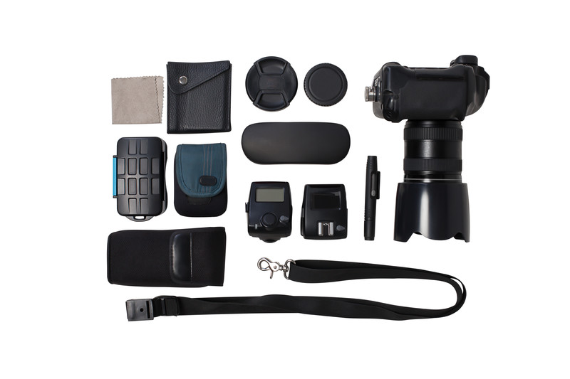 camera equipment laid out